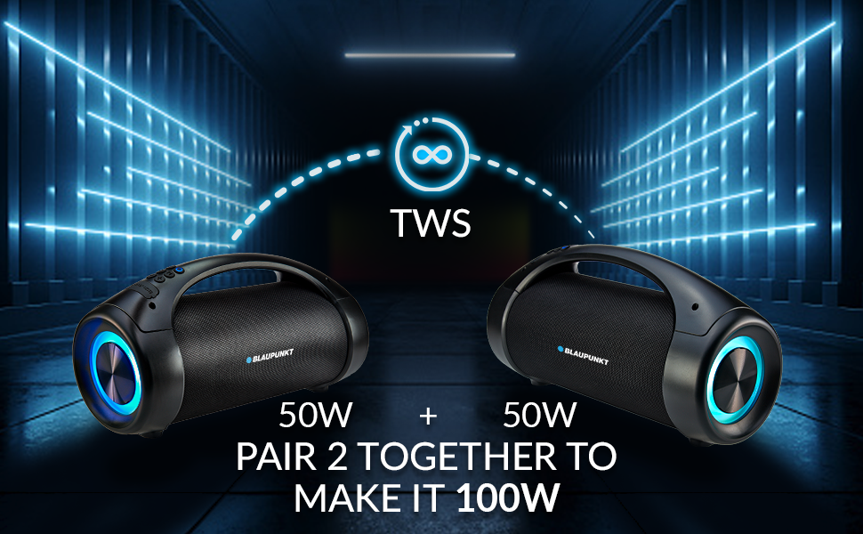 Sound explodes out of this compact boombox. You have 50watts of power to play with. And all this sound is pristine in quality – Clear highs and mid ranges with the thump of deep bass. In addition, you get TWS technology that links two units to make them play as one. That doubles the output and gets things rocking. The other features that make this a great choice are an extra-long playtime, 10hrs, complete connectivity, and a Bluetooth range of 30ft, enough to set you free to tingle and mingle with the crowd that will gather. All the controls are touch-sensitive and the panel is designed for easy use.