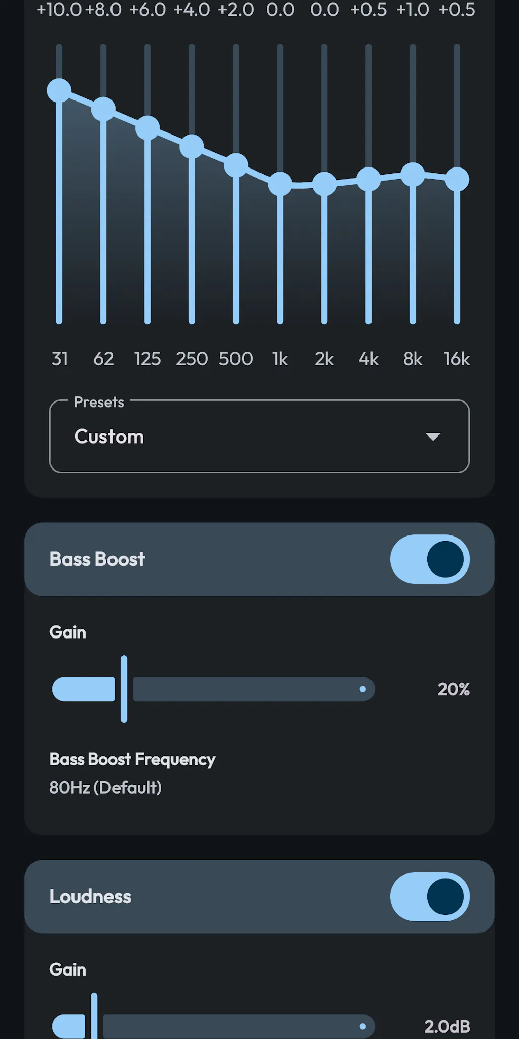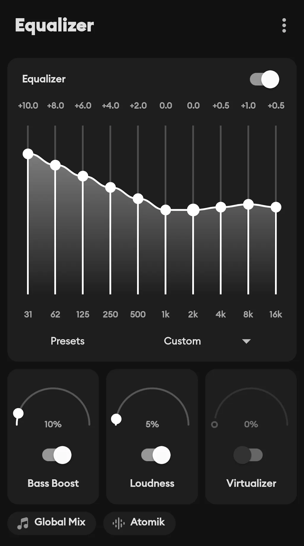 The Flat Equalizer or Flow Equalizer works beautifully — simply reduce the upper frequencies slightly and increase the low-end sliders. The sound suddenly transforms into a rich, warm, thumping output, taking the Trek Boombox to another level.