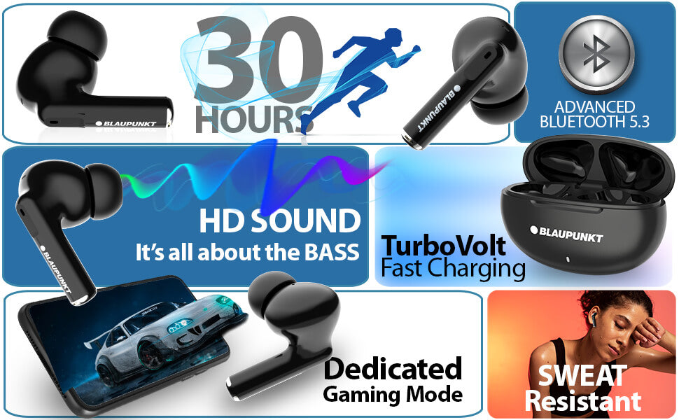Intelli Switch Off Technology-This is one very clever technology that’s loaded in the BTW09 AIR earbuds. It is an artificial intelligence sort of technology that puts your earbuds to sleep when not in use for more then 2 minutes.Inside each earbud Blaupunkt has loaded drivers of the highest quality. These have been tuned to the design and audio amplifiers to deliver the most balanced sound. Another amazing feature of these earbuds is the dedicated gaming mode. Better audio technology has resulted in extremely low latency and faster response to game inputs.Playtime is the most important feature while choosing earbuds. This is where the BTW09 AIR scores high. The carry case has a large efficient battery that charges fast and stores the energy for longer. Blaupunkt has been investing in the best MIC technology for a long time now. Their Clear A.I. Mics are probably the most acoustically advanced you can find today. The BTW09 AIR gets the latest version of these Clear A.I. Blaupunkt is an iconic German brand with nearly 100 years of experience in the Audio world. It is known and respected globally as a brand that delivers the higher levels of reliability, durability and value for money. Once you move up to the Blaupunkt audio experience nothing else will sound as good.