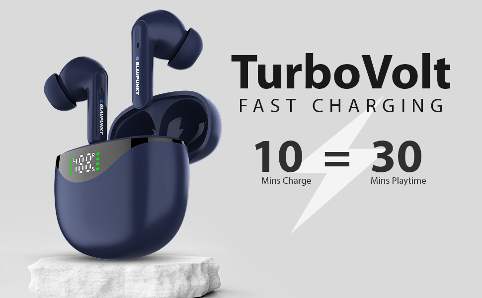 The Germans know all about going the distance with tech. And this is reflected in the battery performance. A single charge gives you 14hrs of playtime. The TurboVolt tech inside results in superfast charging times. A 10mins charge results in 30mins of playtime. And these are figures that are from the real world. The LED display on the case helps reduce battery anxiety too. You will always know the battery status of each bud through the individual display.
