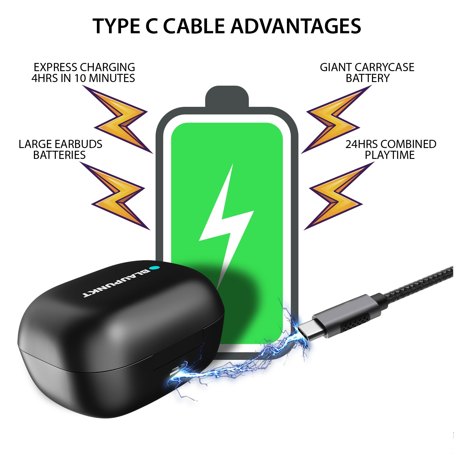 Model Name BTW25 Bass Buds Wireless Earbuds Battery Capacity Earbuds: 2*40 mAh & Charging Case: 300mAh Low Latency 80ms Driver Size Dynamic Driver Voice assistant Siri and Google Assistant Compatibility iPhone, Android Phones, OnePlus Mobiles, Laptop, Smart TV, Macbook, Desktop, All Audio devices supporting Bluetooth A2DP profile Designed & Developed In Germany Imported & Marketed By Envent Worldwide Pvt. Ltd, 105-107, 1st Floor, Tower B-4 l Spaze I-Tech Park, Sec-49, Sohna Road, Gurgaon,Haryana-122018 Customer Care whatsapp support: 8860022600 Email ID: wecare@blaupunktaudio.in Manufaturer Name Zhongshan K-Mate General Electronics Co., Ltd. NO.2, 5TH XINSHENG STREET, GANGKOU TOWN, ZHONGSHAN ZHONGSHAN,China-528477 Packer Address Envent world wide Pvt Ltd C/O Glaucus, Supply chain Solutions Pvt Ltd, KH No. 15/16, Main (1-0) Village Samalkha, Tehsil Vasant Vihar, Delhi-110097 Country of Origin China Approved By Blaupunkt Germany