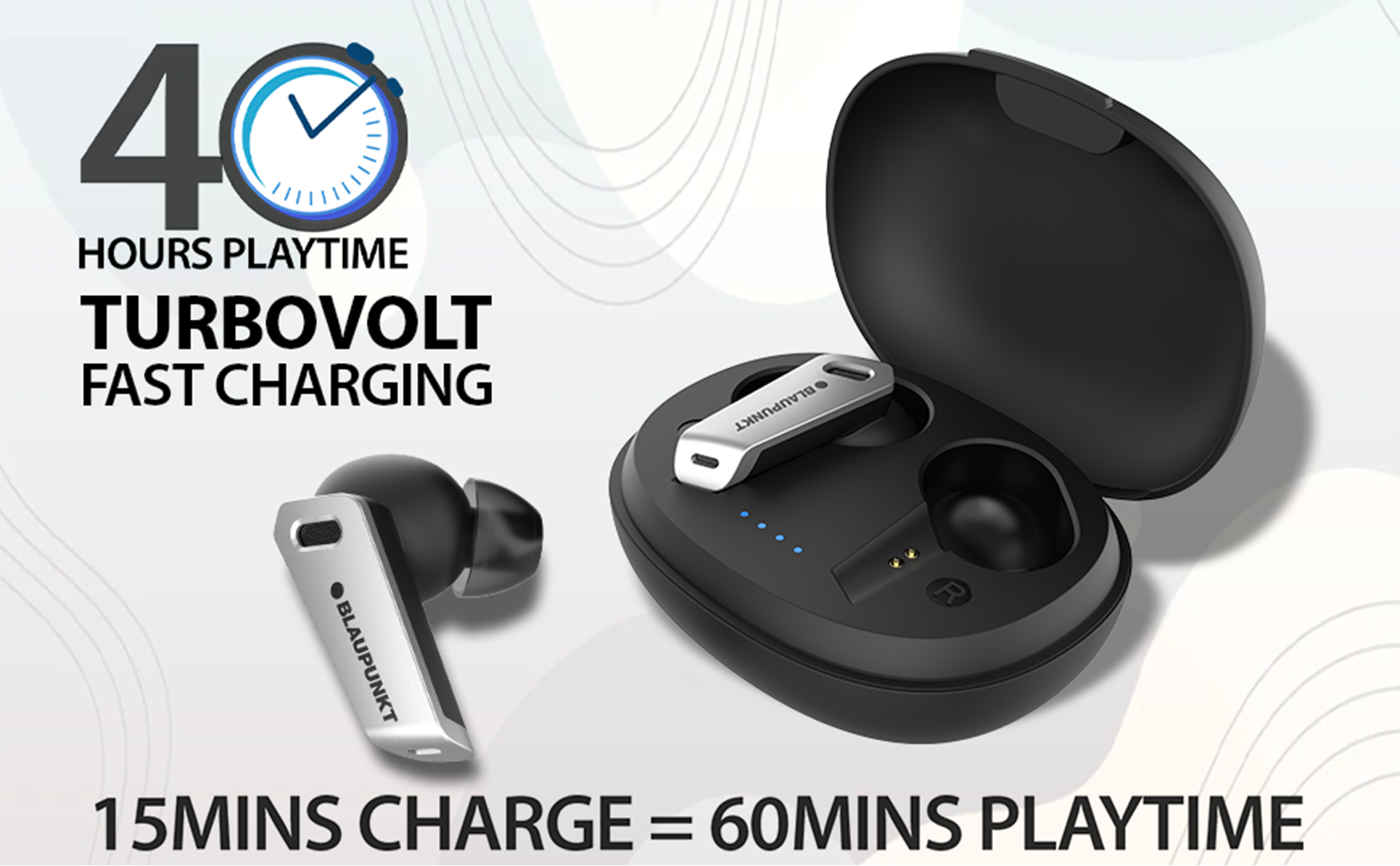 With Blaupunkt's TurboVolt fast charging, the battery can be fully charged in just 15 minutes, which equates to 60 minutes of playtime. It offers an outstanding 40 hours of playtime per full charge.