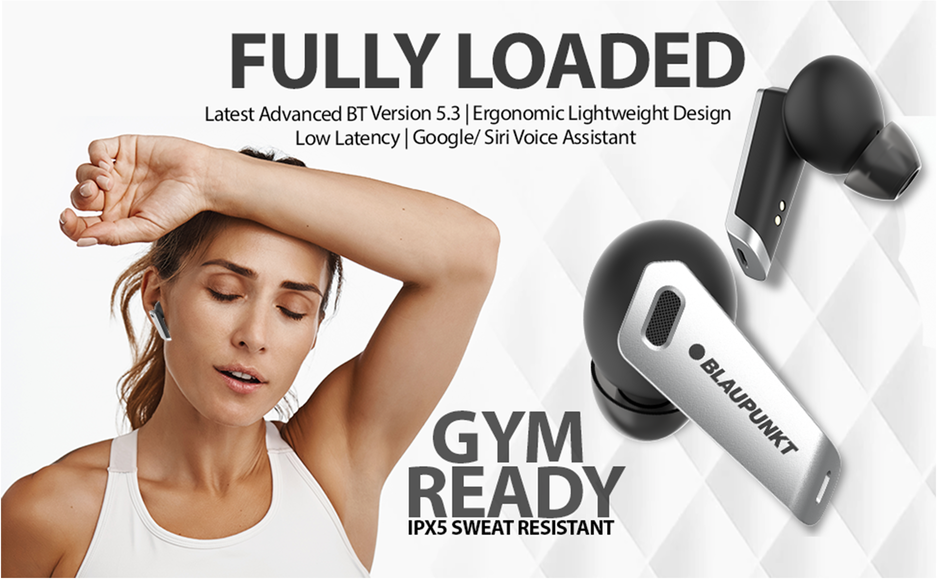Model Name BTW300 Bass Buds Wireless Earbuds Battery Capacity Earbuds: 40*2 mAh & Charging Case: 420mAh Φ8mm Low Latency 80ms Driver Size Φ8mm Voice assistant Siri and Google Assistant Water resistant Compatibility iPhone, Android Phones, OnePlus Mobiles, Laptop, Smart TV, Macbook, Desktop, All Audio devices supporting Bluetooth A2DP profile Designed & Developed In Germany Imported & Marketed By Envent Worldwide Pvt. Ltd, 105-107, 1st Floor, Tower B-4 l Spaze I-Tech Park, Sec-49, Sohna Road, Gurgaon,Haryana-122018 Customer Care whatsapp support: 8860022600 Email ID: wecare@blaupunktaudio.in Manufacturer Address Zhongshan K-Mate General Electronics Co., Ltd. NO.2, 5TH XINSHENG STREET, GANGKOU TOWN, ZHONGSHAN ZHONGSHAN,China-528477 Packer Address Envent world wide Pvt Ltd C/O Glaucus, Supply chain Solutions Pvt Ltd, KH No. 15/16, Main (1-0) Village Samalkha, Tehsil Vasant Vihar, Delhi-110097 Country of Origin China Approved By Blaupunkt Germany