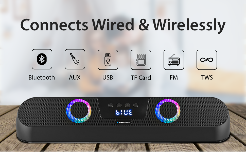 Today gaming is big and getting bigger. Teens, young adults, and even Boomers are on their gaming machines fighting wars, setting up empires, flying aircraft, and playing all sorts of other games. Now Blaupunkt has added the element of perfect sound to gaming by introducing the new SBA25 Gaming Soundbar.There are Dual Passive Radiators that deliver a massive 25 Watts of deep bass and crystal clear high and mid frequencies. Dynamic RGB lights surround each speaker and throb and pulse. This emerges you further into the game by creating the perfect ambience. The SBA25 Gaming is loaded with AUX IN, USB IN, Bluetooth, FM and TWS. These give you fast and easy links to you phone, laptop, TV, gaming console and any thing else you might have.