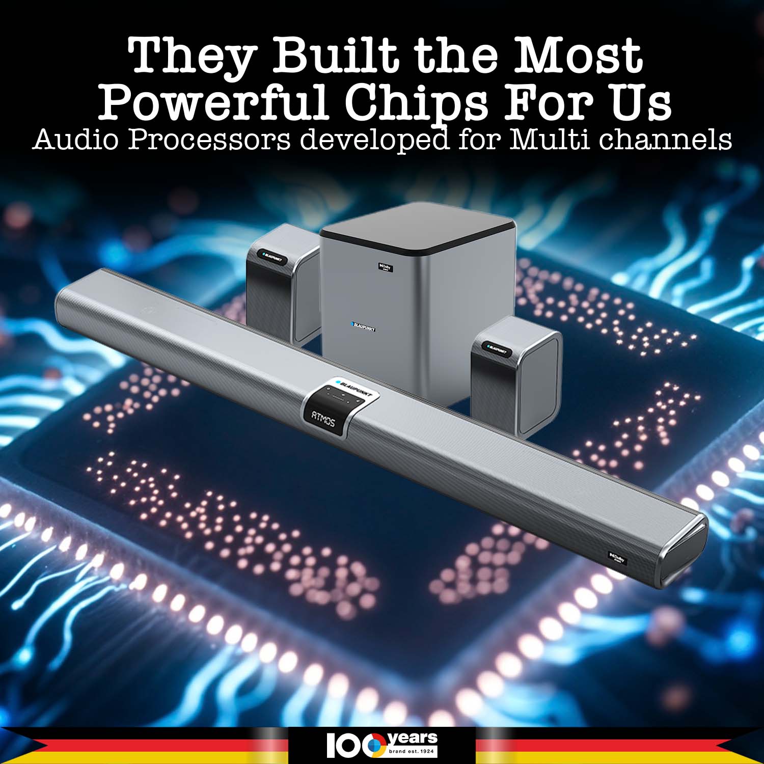 Introducing India’s best & most advanced Home Theatre Blaupunkt SBW600 Xceed Emperor, A 12.1.4 Dolby Atmos Home Theatre system. It has 17 Neodymium drivers and a 1200W output. This setup delivers immersive 3D sound and ultra-deep 20Hz bass through an 8” wireless subwoofer. Rear satellites with 5.8G drivers and Zero Lag connectivity provide seamless surround audio. Made with aerospace-grade metal and a brushed finish, the soundbar features an IntelliTouch Command Centre and adaptive LED interface. You can enjoy Pro-Audio EQ modes along with next-gen HDMI eARC, Optical, and AUX-in connectivity. Karaoke fans will love the high-end wireless mic. With German engineering, cinematic precision, a 3-year warranty, and free doorstep installation, the SBW600 Xceed Emperor sets a new standard in premium home entertainment.